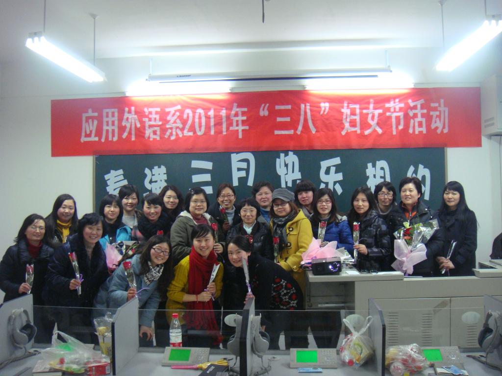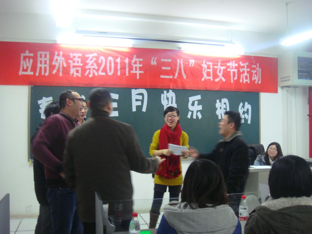 春暖花开,煦日融融,昨日,“应用外语系三八节活动”在一片欢声笑语中拉开帷幕,平日书声琅琅的210语音室变成了老师们欢聚一堂的胜地,桌上的零食、水果,黑板上的大红横幅,墙壁上的生动投影,无不透露出活动组织者们的专心和细心,让人觉得温馨又贴心。