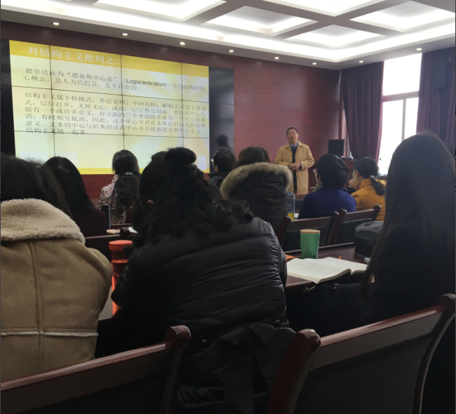 本次讲座的主题为“德里达解构主义翻译理论的六个维度及其特点”。在讲座中,刘教授系统地介绍了德里达解构主义的翻译思想,对其核心概念如延异、踪迹、可重复性、确切翻译作了细致的分析和阐述,说明了德里达的翻译理论不仅是形而上的构建,也可运用到翻译实践的思考。刘教授的讲座条理清晰,举例旁征博引,贯古通今,生动活泼。到场聆听讲座的制片厂传媒免费版在线看全体专任教师对德里达德翻译理论有了更深入的了解,并深受启发。讲座结束后,刘军平教授悉心解答我院教师的疑问,并与我院教师展开了热烈的讨论。