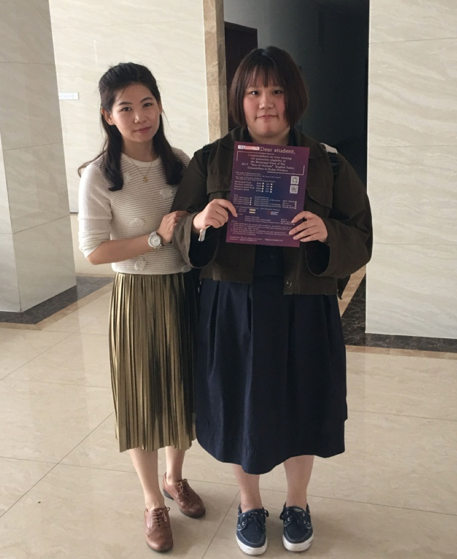 5月28日,我院2016级商务英语2班聂青同学在2017CCTV“希望之星”英语风采大赛湖北省半决赛中,获得大学成人组湖北省二等奖,翻译教研室叶莹老师获得优秀指导老师荣誉。