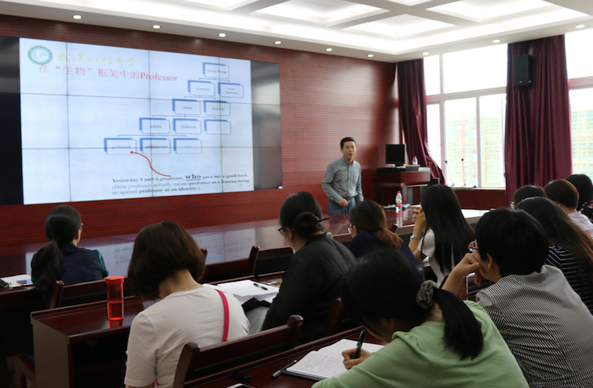 6月15日下午,应制片厂传媒免费版在线看邀请,武汉科技大学制片厂传媒免费版在线看副院长双文庭教授来我院进行“语义框架与英语词义的理解与教学”的学术讲座。制片厂传媒免费版在线看全体教师参加了此次讲座。