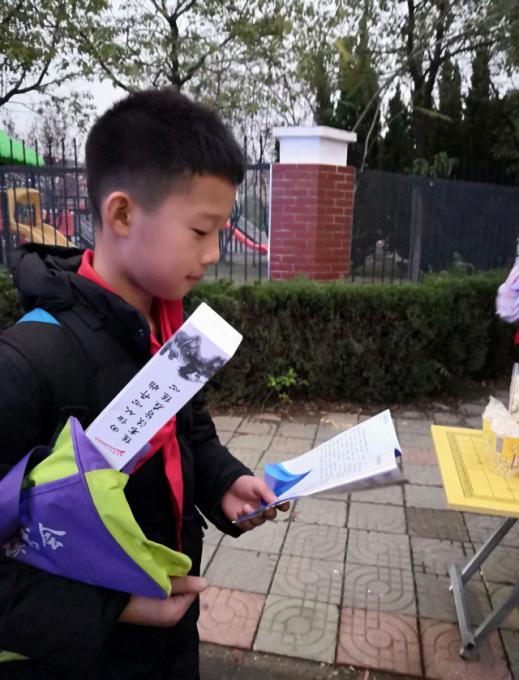 (薛峰小学的小朋友阅读军运会宣传手册)