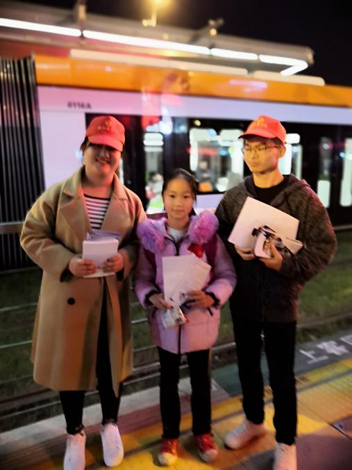 本次宣讲活动共计八天,由16名志愿者组成的军运会宣讲队分三次先后开展了在院内班级、薛峰小学、有轨电车车站的宣讲活动。
