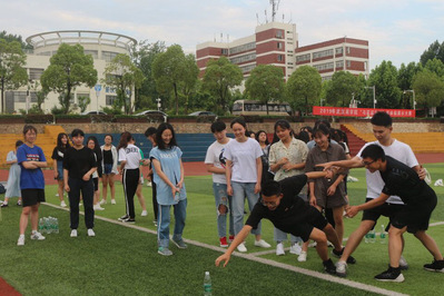 5月28日下午,主席团成员及学生会部门代表共50余人在南区操场进行了户外素质拓展活动。蓝天白云下,茵茵绿草前,大家随机组成5个小组,经过约十分钟的团队创建,小组成员们迅速熟悉起来,热情高涨,积极参与团队游戏。游戏内容包括“群龙取水”、“乒乓球大冒险”等,大家通过竞争与合作来培养团队精神,增进成员情谊。约两个小时后所有游戏结束,同学们依依不舍地离开了操场,欢声笑语仿佛依然回荡在半空中。
