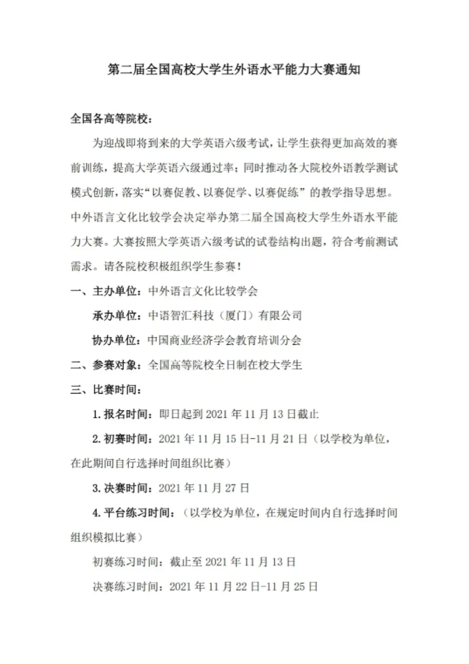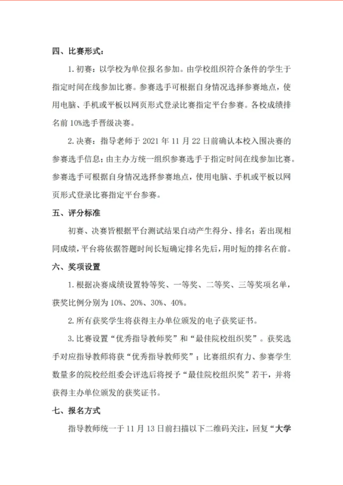 2.初赛时间:2021 年 11 月 15 日-11 月 21 日(以学校为单位,在此期间自行选择时间组织比赛)