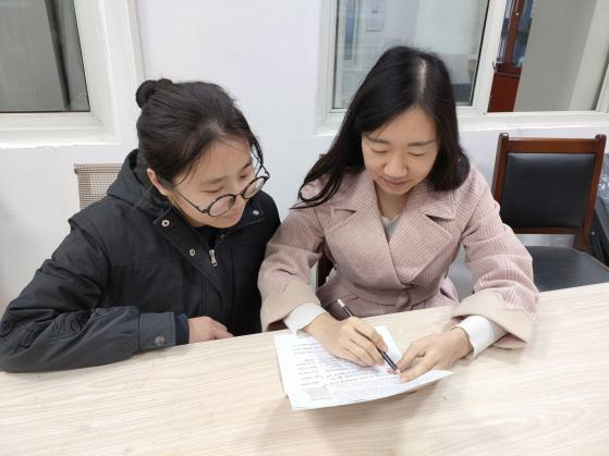 图为写作大赛指导老师贾宁宁和参赛选手刘欣婷