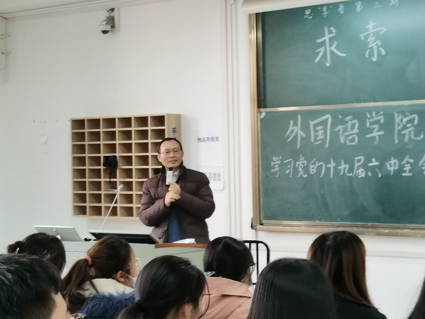 (刘宗劲老师为同学们讲解十九届六中全会精神)