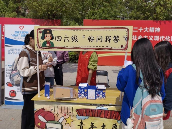 迎着和煦春风,伴着花香袅袅,我们迎来三月雷锋月。今年是毛泽东等老一辈革命家为雷锋同志题词60周年,雷锋的故事虽早已家喻户晓,深入人心,但为了在新时代里将雷锋精神与时代精神更好地结合,我院青年志愿者协会于2023年3月10日和15日中午12点、下午5:35在北区食堂门口开展四六级“你问我答”活动。
