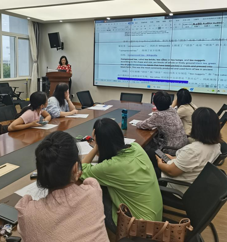 另一个重要议题是翻译专业设置的调整优化改革方案研讨。老师们对翻译专业的现状各抒己见,气氛热烈,刘梦婷老师认为翻译专业的学生存在“学习内驱力不足”的问题,彭梦佳老师反映“部分学生双语转换技能还不够娴熟,无法对机器翻译的结果进行译后编辑”。大家通过讨论提出了一些针对性的建议,包括更新课程设置、加强实践能力培养、提高外语水平要求等,从而提高翻译专业学生的综合素质和就业竞争力。在此环节中,黎珂主任还跟大家传授了暑期参加的语料库相关培训心得,喻娟老师就主持参加的外研社首届大语言模型辅助外语教学比赛分享了如何结合大语言模型改进教学设计,从而提升翻译系教师的教学水平。