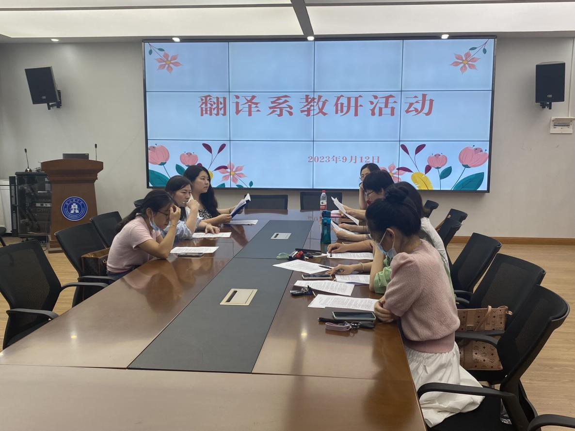 为提高新生专业教育的效果和质量、优化翻译专业设置,2023年9月12日下午,翻译系全体教师在北四-416B会议室,围绕新生专业教育活动研讨及效果评价、本科专业设置调整优化改革方案研讨及2022版、2023版OBE课程教学大纲审议等议题,召开了新学期翻译系的第一次教研活动。