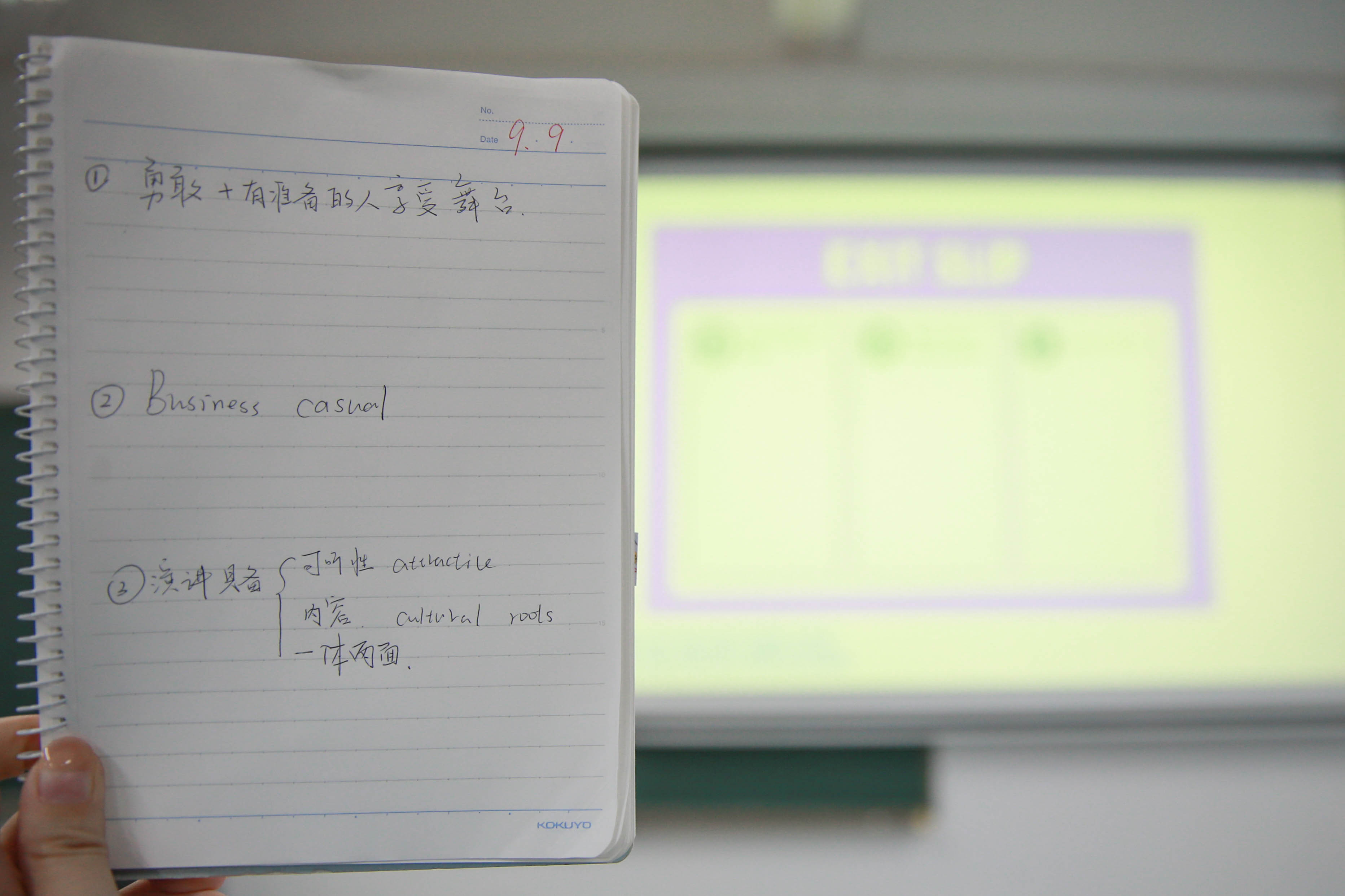 据了解,“出门票”借鉴了321课堂反馈课堂管理技巧,也称为出门通行证(EXIT TICKET),是一种简单快速的课堂评估方法,有助于老师快速评估学生是否掌握了当课所学的核心概念或知识点。3代表今天学到的三个知识,2代表两件我觉得有趣的事情,1则是一个我仍然存疑的问题。胡荃老师根据教学实际情况选择将“3”应用到课堂,形成了“出门票”。除了在英语演讲课程中应用出门票,胡荃还将其应用到综合英语、英语语音等其他科目中。