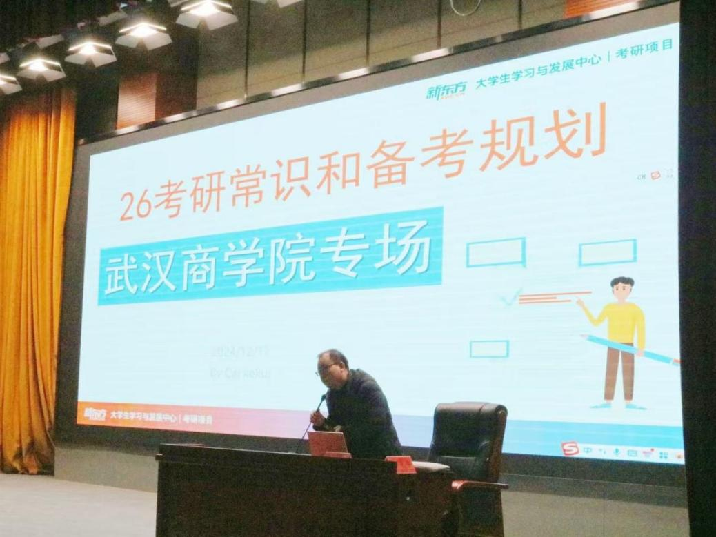 12月17日下午,武汉商学院制片厂传媒免费版在线看在图书馆报告厅举行了以“把握未来:考研、考公、考编与国际视野下的深造路径”为主题的致远讲坛。此次讲座邀请了新东方名师李敏与蔡克奎为学生们深刻剖析当代青年面对考研、考公、考编、留学应当如何合理规划。